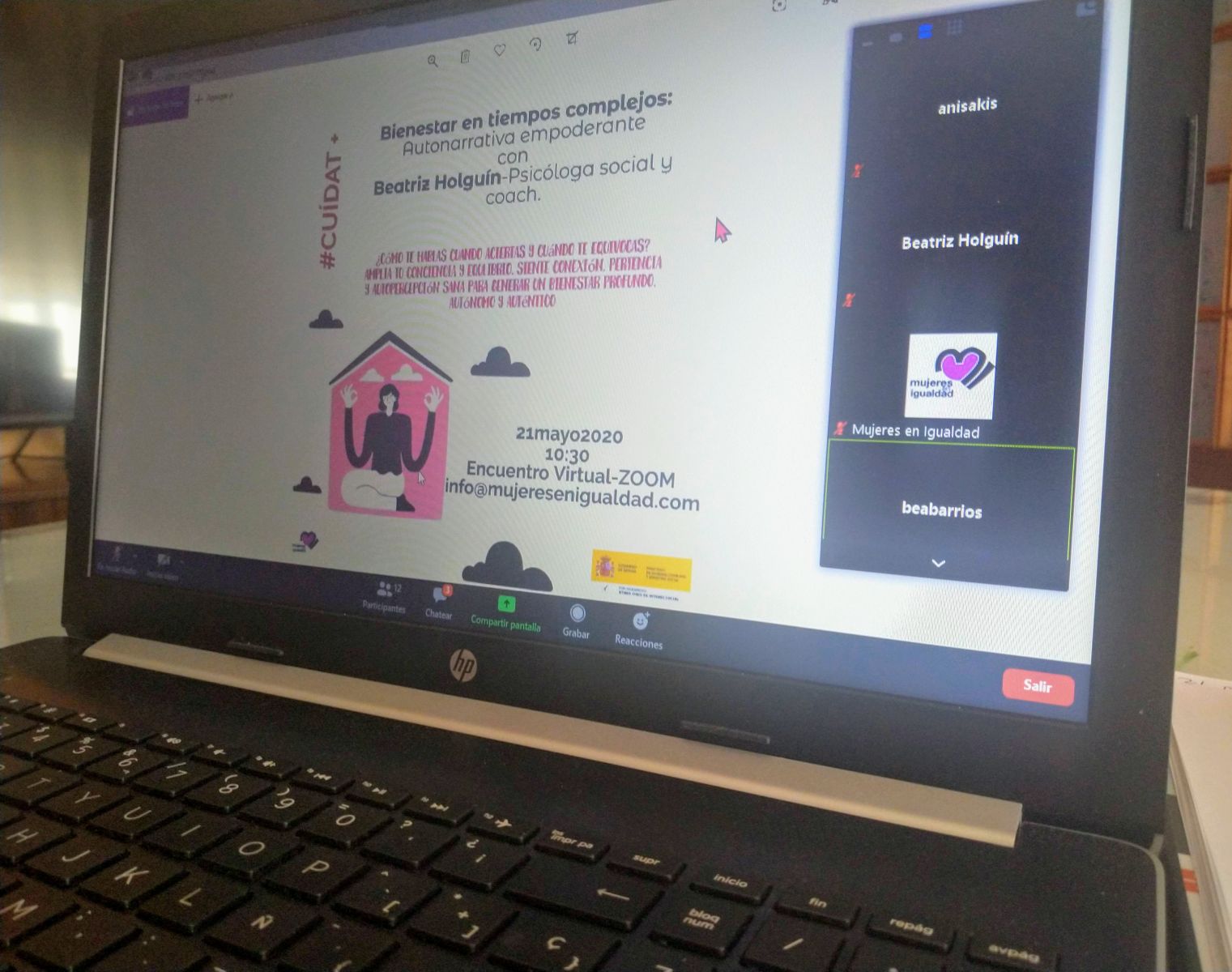 Beatriz Holguín, psicóloga social y coach, ha impartido esta mañana una sesión a través de Zoom sobre autonarrativa empoderante dentro del ciclo de encuentros del programa CuídaT+, subvencionado por el Ministerio de Sanidad, Consumo y Bienestar Social.
